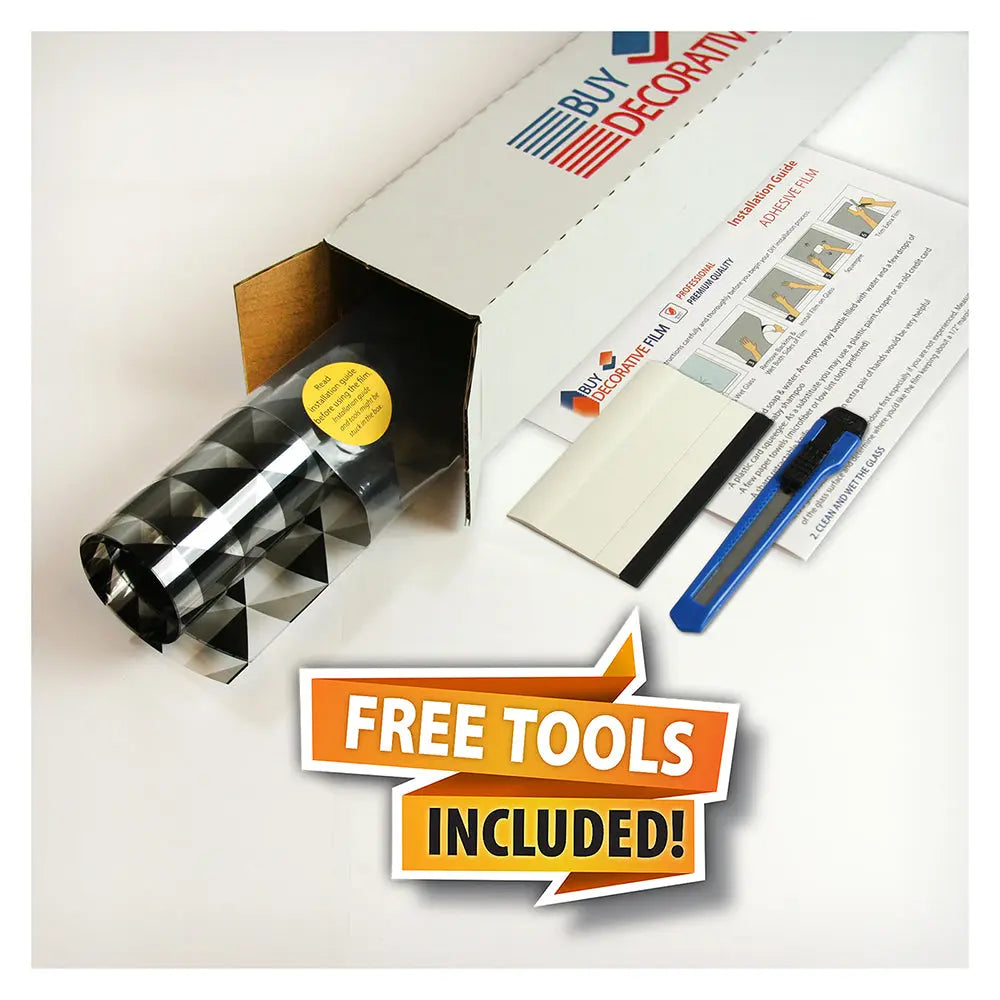 The Black Triangle Decorative Window Film has a diamond formation of squares divided into four triangles of 24 millimeters in width and height, ranging from a more opaque shade of black to clear. Transform your environment into one of elegance and luxury by providing your windows with an abstract look that seems to embody the look of contemporary art.