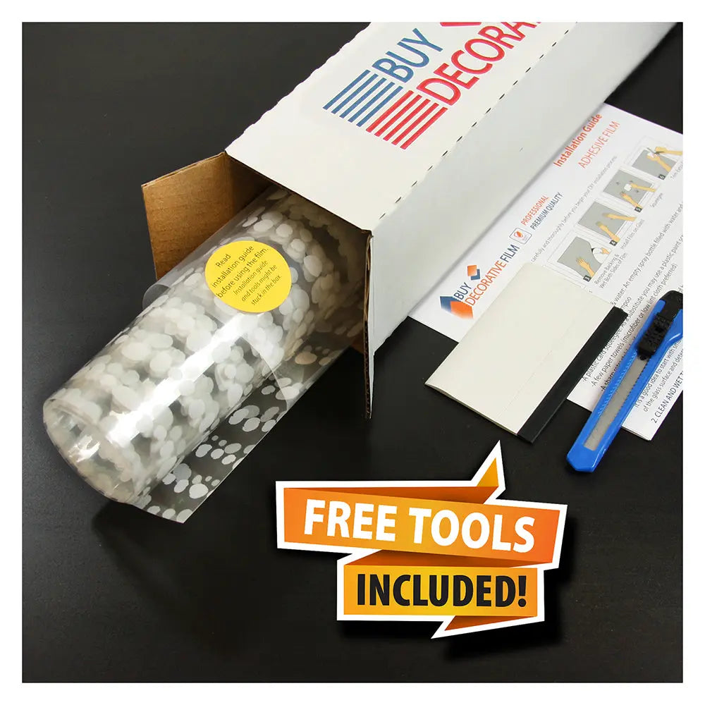 Unlike any other polka-dot pattern, this Polka Dot Decorative Window Film adds a unique quality to the environment. It is a combination of both modernity and disco, where the unbroken lines continuing beyond the roll of film exhibit a keen sense of angularity while the incomplete circles weaving in and out of those lines vibrate a familiar sense of exuberant warmth.
