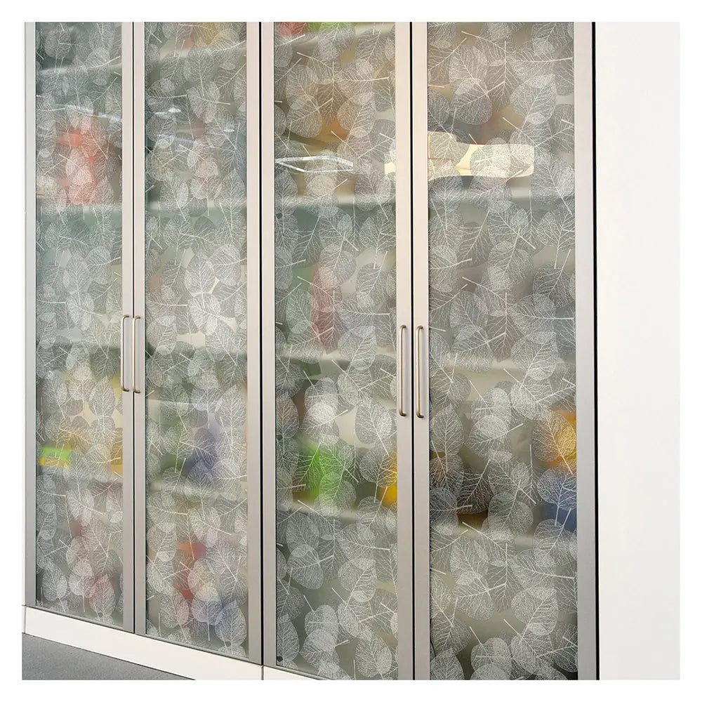 The White Leaves Decorative Window Film has white leaves spread relatively evenly across the film, where the whiteness of the foliage highlights the intricacy of the botanical veins. You can release your style and modernity with the illustrative leaves that emanate beauty and delicacy.