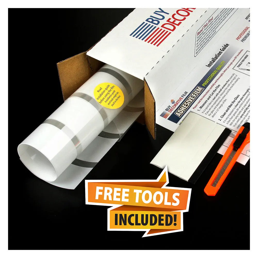 The Blind Plus Decorative Window Film has especially thick white lines (1 3/4 inch wide Blinds) and thus brings you the most view-shielding out of all Blind decorative films.