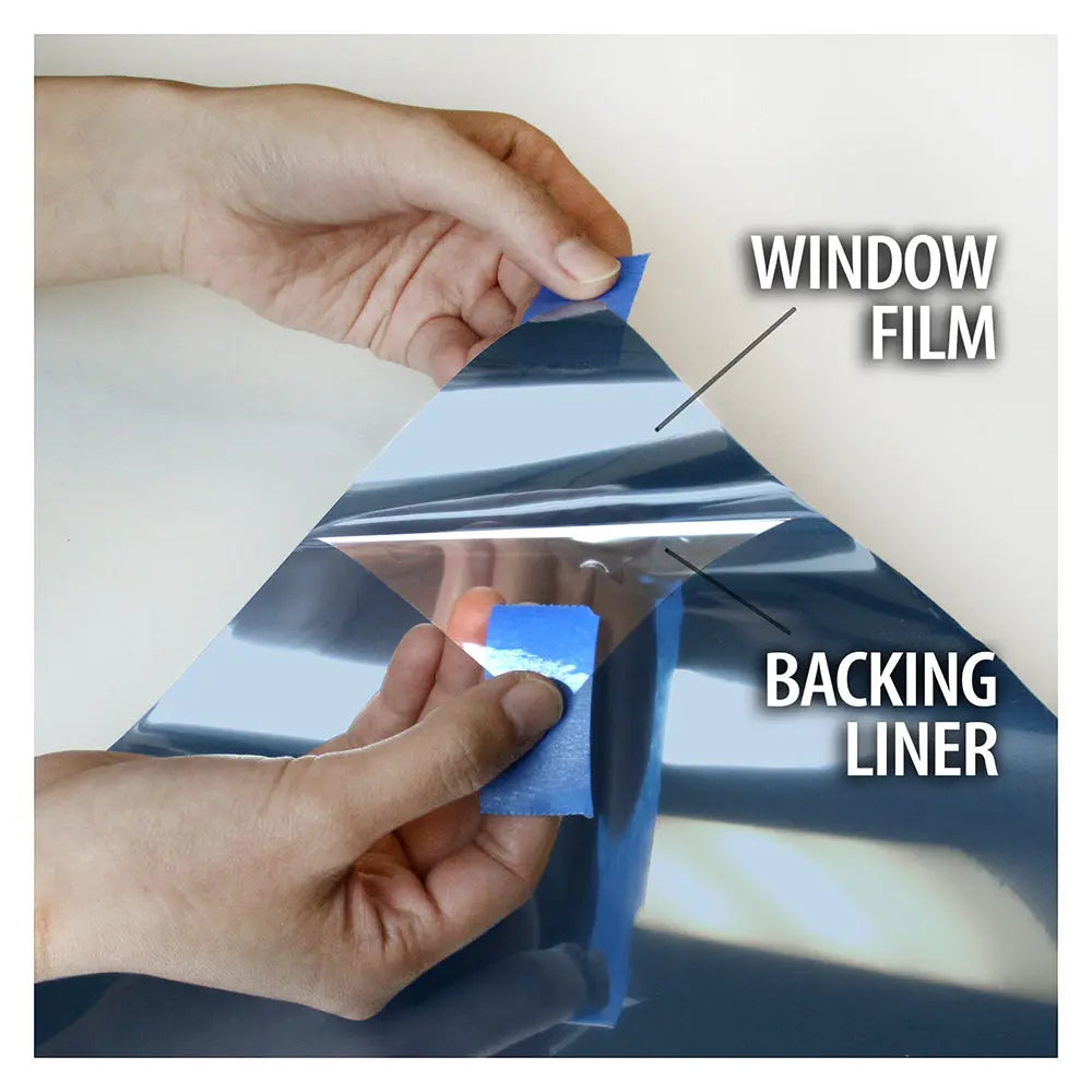 Buy Decorative Film's Premium Blue Color High Heat Control and Daytime Privacy film gives off a vibrant blue shade that provides your windows with a modern, luxurious look. The film's intense blue color on the outside with a reflective silver finish on the inside creates excellent daytime privacy while boasting high heat rejection. The daytime privacy effect will only work during the day when the outside is much brighter than the inside and will become reversed at night because of the lighting conditions. Because the film absorbs a large amount of heat, it is not recommended for dual pane windows, but otherwise, the Premium Blue High Heat Control/ Daytime Privacy window film serves as an ideal choice.